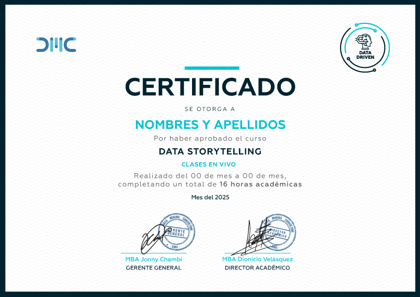 Por ello DMC Perú, presenta el “Curso Data Storytelling” que te permitirá aplicar los conceptos de Storytelling a los Dashboards y Reportes que manejes en tus actividades laborales, empleando Power BI como herramienta de visualización.