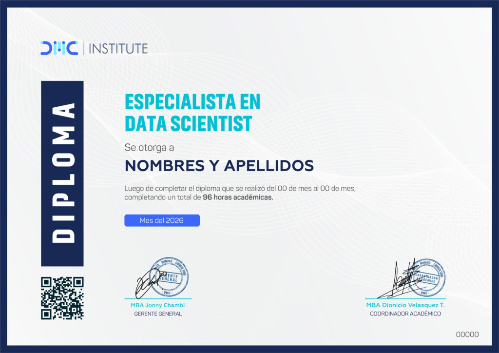 En virtud a esta realidad, DMC Institute ha diseñado el Diploma Data Scientist destinado a brindarte una capacitación integral en el campo de la ciencia de datos, desde los primeros pasos en Python, pasando por el entrenamiento y evaluación de modelos de machine learning, hasta la selección y adopción de la metodología idónea acorde a los requerimientos y recursos de cada proyecto.
